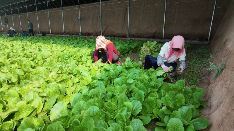 新修建的“產(chǎn)業(yè)路”西側(cè),剛剛建成的溫室內(nèi),工人們忙著拉設(shè)鋼絲架,為即將到來的竣工驗收和秋菜種植做準備;道路東側(cè),原有的溫棚里綠油油的小白菜新鮮上市,農(nóng)戶們忙碌著收菜打捆,運往市場?!白詮拇迳辖诉B排的日光溫室,我們一年四季都有活干、有錢賺,每年穩(wěn)定的收入接近5萬元?!?長期在此務(wù)工的城關(guān)鎮(zhèn)前衛(wèi)村村民劉萬江說。