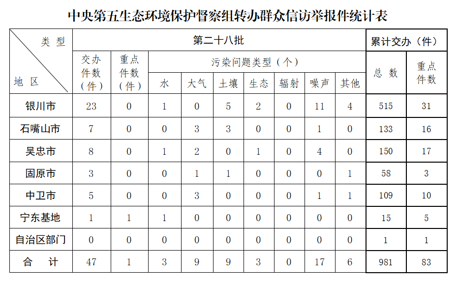 中央第五生態(tài)環(huán)境保護督察組向寧夏轉辦第二十八批群眾信訪舉報件